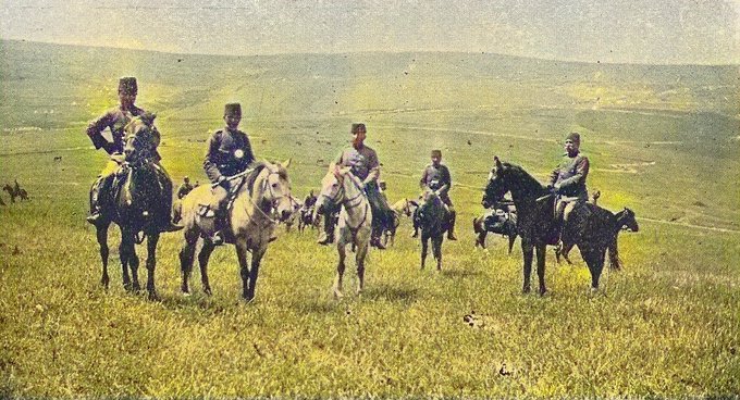 Τούρκοι έφιπποι αξιωματικοί στο μέτωπο της Τσατάλτζας, πιθανόν και έξω από τις Καστανιές. Φωτογραφία: https://ozhanozturk.com/