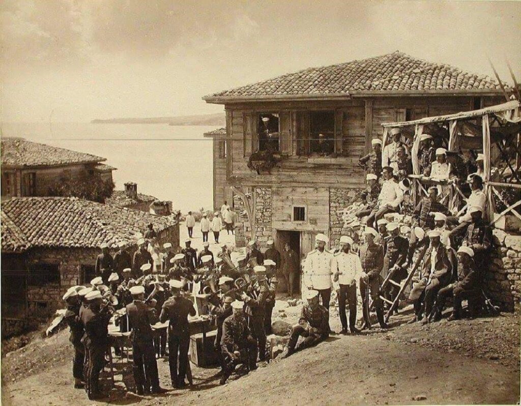 Φωτογραφία: Ρώσοι αξιωματικοί και ορχήστρα κοντά στη Θάλασσα του Μαρμαρά Φωτο: Α.Ντ.Ιβανόφ Πηγή: https://bnr.bg